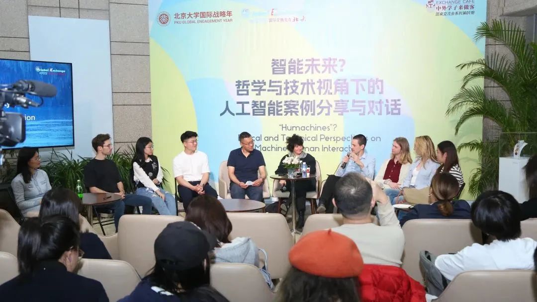 为响应北京大学国际战略年建设,4月27日晚,由北京大学国际合作部留学生办公室主办的《中外学子来做客EXCHANGE CAFE》圆桌交流会系列首期:“智能未来?哲学与技术视角下的人工智能案例分享与对话”在北京大学百周年纪念讲堂四季庭院成功举办。本期《做客》由北京大学王选计算机研究所的冯岩松教授与哲学系的Julius Schoenherr教授作为邀请人,伦敦艺术大学教授、博古睿研究院学者Stephanie Sherman教授作为特邀嘉宾,6名国际交换生和中国学生前来做客,共有全校近40个院系的近百位师生来到现场,展开一场跨学科的知识探求与多视角的热烈讨论。