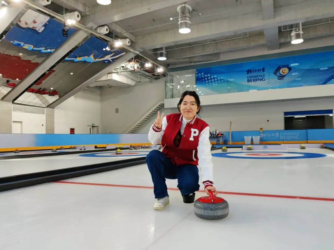 △ 孙艺甜在冬奥场馆近距离体验冰壶运动,图源受访者