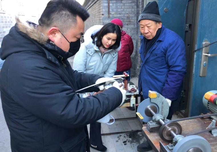 △ 梁靖雯在北京胡同里感受传统冰刀制作、保养技艺,图源受访者