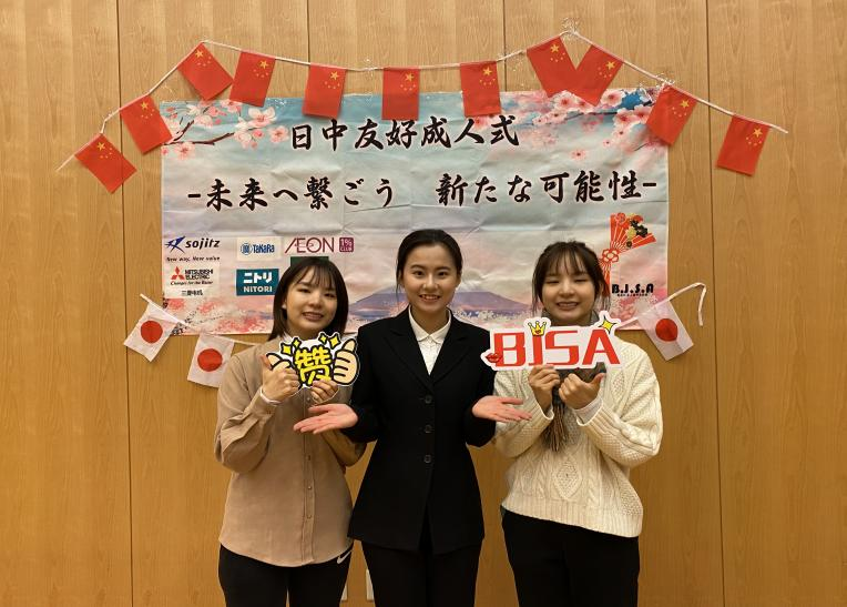 △ 福川美希(中)参与日本国驻华大使馆举办的中日友好成人礼活动,图源受访者